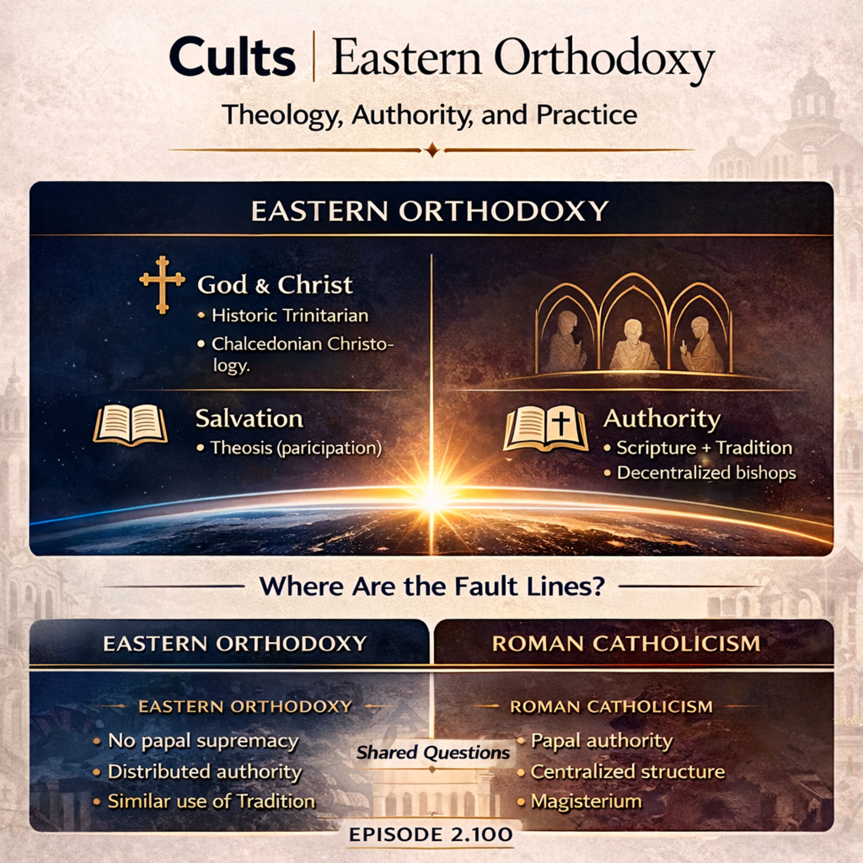 Episode 2.96 In this episode of Cults, Michael and Zach shift from the gospel question to a foundational issue beneath it: authority. Who has the final say in matters of faith—Scripture itself, or an institution that interpre...
